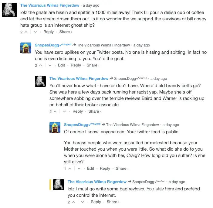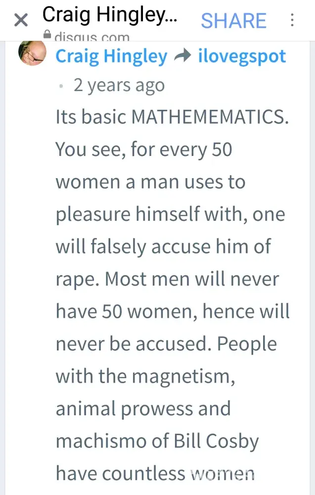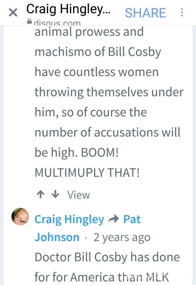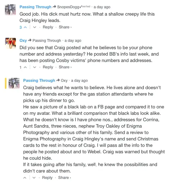 I have attached screenshots that a rape victim advocate friend of mine found of Craig Hingley on a comment board of a story about Bill Cosby, admitting that he's falsely libeling me. This should be enough to help anyone reading this to understand this man is targeting and harassing me with libel.
