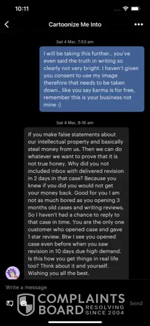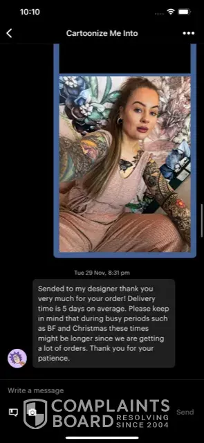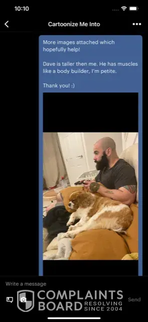 I would like to issue a formal complaint to the shop I purchased from on the 29th November 'Cartoonize Me Into'.