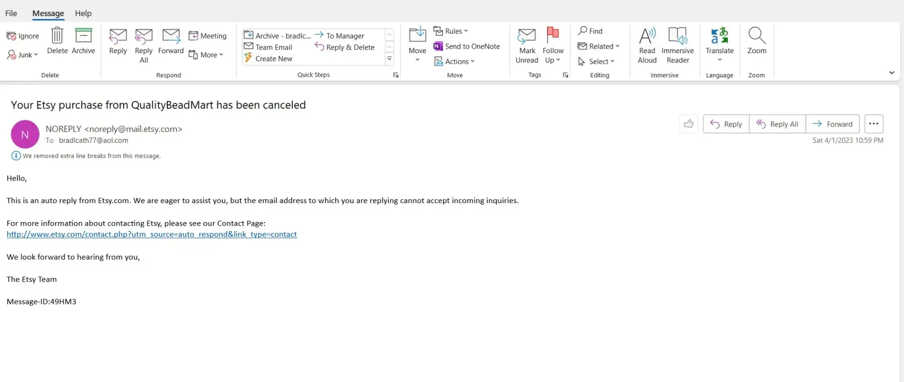 I had an item cancelled from an esty shop Quality Bead Mart. When I got the cancellation it did not state which item. I contacted the seller and stated which item it was, stating no longer available. I asked if that is the case why is the item still showing available for sale, I as told to contact Esty. Why contact Esty, I would have assumed the shop would somehow make the correction so others would not assume the item was available. Again, I was told to contact Esty. I was a bit upset how the shop just blew me off since I do order from them often. And as if somehow what I was viewing the item incorrect online when the status of the item was still showing available. So to prove my point that something was wrong with the site, store or Esty, I reordered the same item, hoping the shop would research it. (Sorry I am a retired programmer, business analyst, business system analyst and SQA engineer) I was trying to help. I gave them a 1 star for not having the item and the comments from the shop. It was cancelled without any explanation and all subsequent orders from me cancelled. Is this store policy or within Esty store policies?