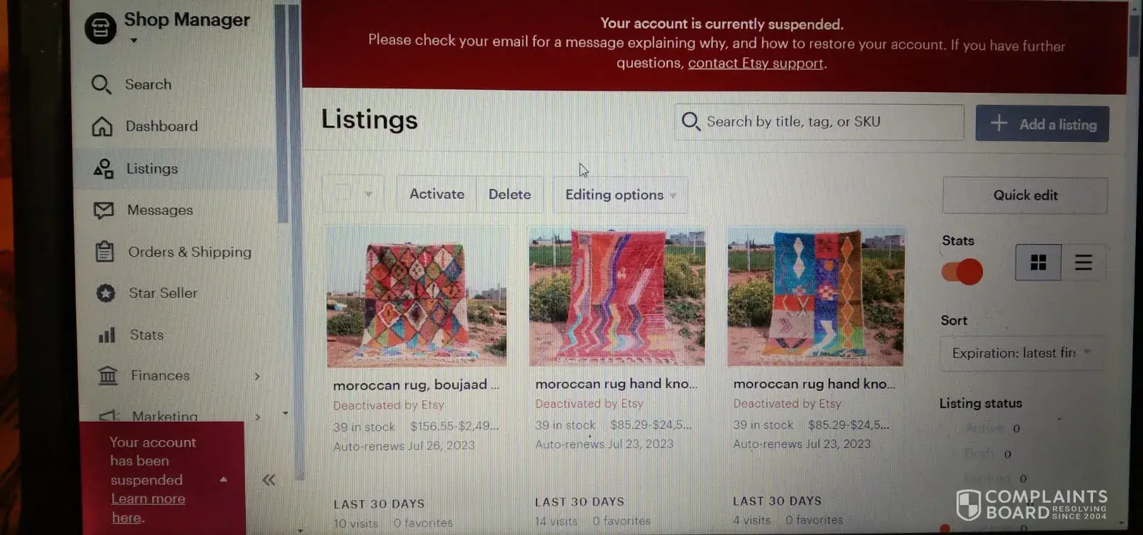 Hi, I hope you are well, and thank you so much for giving us so much information. I've been working on an Etsy store for over three months. I'm from Morocco. I sell traditional handmade rugs. I have worked hard and listed over 300 products in this store. I've made seven sales and haven't broken any platform policy. Yesterday I opened my shop and I was surprised that the shop was closed. I contacted the support team and they told me that this is a permanent store suspension and I cannot recover my store. Please help me. I would like to file a claim on the Etsy platform because this store took a lot of effort and money from me and the store was closed without any reason, I hope you can help me with any advice or information that I can benefit from, and thank you very much