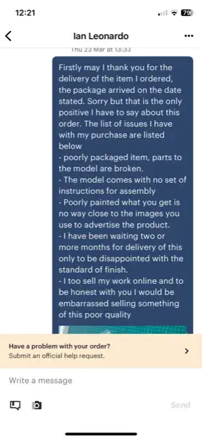 - 4th March I again received rude messages from Etsy Seller which is completely unnecessary. (messages will be in images below for everything including my responses).