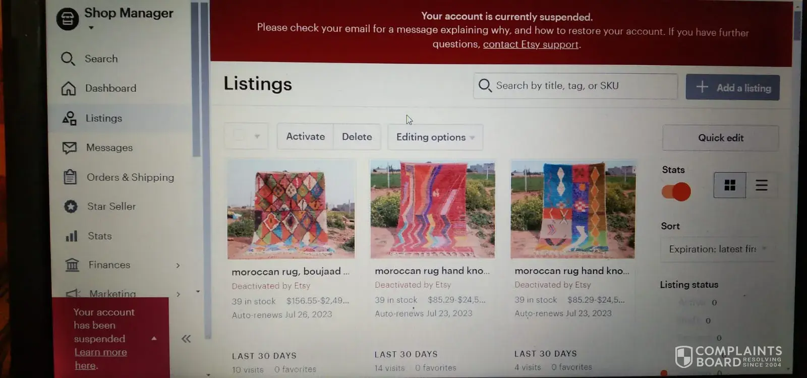 Hi, I hope you are well, and thank you so much for giving us so much information. I've been working on an Etsy store for over three months. I'm from Morocco. I sell traditional handmade rugs. I have worked hard and listed over 300 products in this store. I've made seven sales and haven't broken any platform policy. Yesterday I opened my shop and I was surprised that the shop was closed. I contacted the support team and they told me that this is a permanent store suspension and I cannot recover my store. Please help me. I would like to file a claim on the Etsy platform because this store took a lot of effort and money from me and the store was closed without any reason, I hope you can help me with any advice or information that I can benefit from, and thank you very much