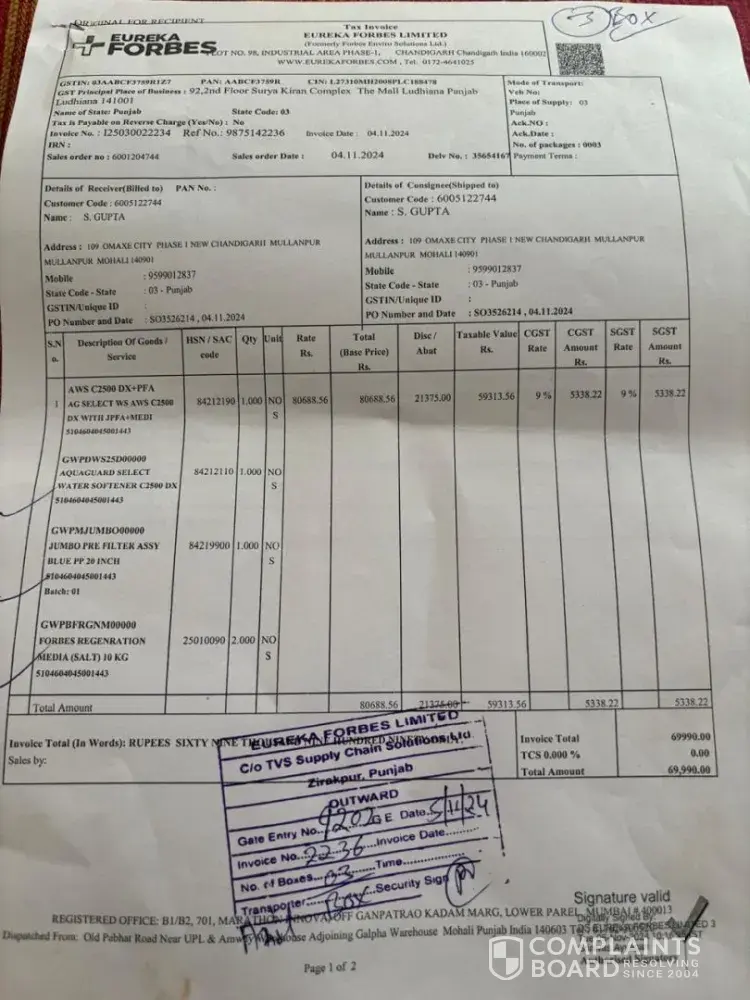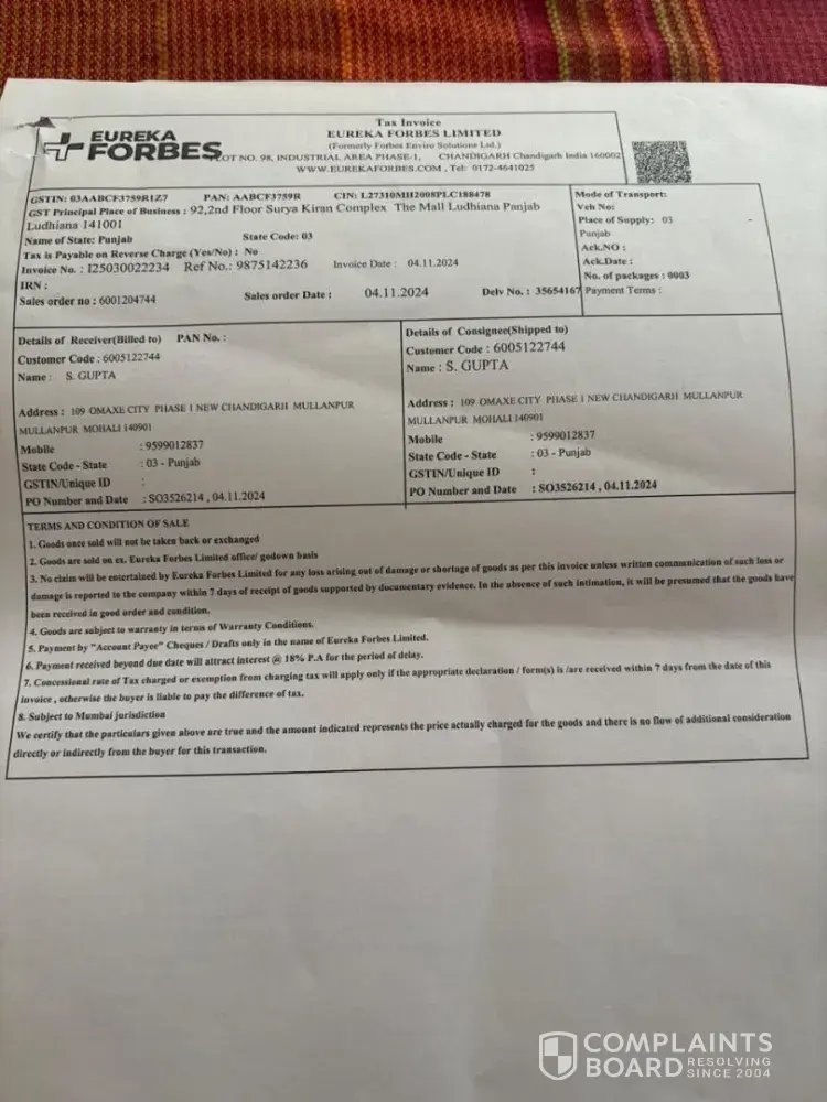 Read full complaintIs Eureka Forbes Legit?