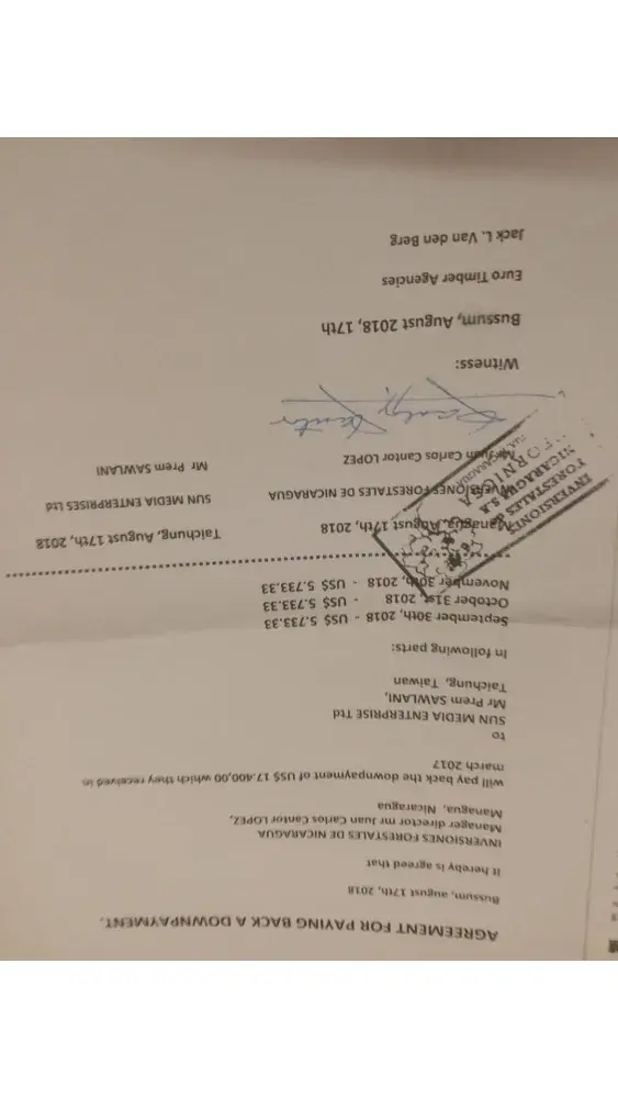 He convinced me has cocobolo logs from nicaragua at good price and we made contract and i transfered usd17400 to his nicaragua supplier inversiones forestales de nicaragua, s.a mr. Juan carlos cantor lopez on 24th march to supply me cocobolo logs but both mr. Jaap and carlos failed to ship my logs. Last month they said they have issues with delivery and they want to refund my money i said ok. But it is over one month they both are giving me stories. I am enclosing all the evidence here like contract and bank swift copy. I want complaint board to publish this matter immediately. So mr. Jaap and carlos dont cheat others. Mr. JAAP VAN DEN BERG is on facebook and enjoying my money which carlos shared with him. I have complained to ministry of foreign affairs taiwan, dutch consulate taipei, taiwan embassy nucaragua, nicaragua embassy taipei. Taiwan authorities are helpful but dutch and nucaragua authorities are not helpful at all.