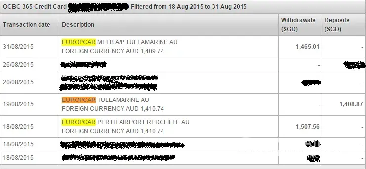 Firstly, it took Europcar more than a month to give me a response on my authorisation charge inquiry, despite me calling and emailing on 3 separate occasions. I had to chase Europcar for an answer. Secondly, Europcar's process of placing an authorisation charge on customers' credit card is ridiculous. When I picked up the car at Perth Airport on 18 Aug 15, a charge of AUD1, 410.74 was made to my credit card. This was the deposit plus GPS and additional driver charges. But, the very next day on 19 Aug 15, the same amount was debited back into my credit card account! When I returned the car on 31 Aug 15, a charge of AUD1, 409.74 (-$1 deposit) was made on my credit card. Becoz of the transactions on 18 and 19 Aug 15, i lost SGD98.69 due to the exchange rate. Why is there a need to debit back the amount into my account? Why can't Europcar hold the amount until I return the car then debit back the deposit? Renee from Customer Relations Australia was defensive and stubborn by saying this is company policy and that I agreed to the terms & conditions when i signed the rental agreement. This was not what was written in the T&C: [General Rental Terms, Section 6.2 Terms of Payment]: "When payment is made by means of a credit card, an authorisation will be requested prior to the start of the rental... This amount is not debited. It is held on cardholder's bank account until the final rental charge amount is debited." [Prepayment Terms and Conditions]: "An authorisation will be obtained at time of rental and only on return of the vehicle will the corresponding charges be posted to the credit card." Lastly, another charge of AUD512.38 was made on my credit card on 1 Oct 15. I did not receive any invoices, statement, or document to explain what this charge was for. When I called to get an answer, it turned out that they had keyed in my email address wrongly thus the invoice didn't reach me. And the charge was for a small glass chip on the windscreen! When i finally received the invoice and damage report, they had spelt my name and email address incorrectly again! I have requested and have yet to receive the updated invoice and damage report as of now. This administrative lapses is outrageous and unacceptable. It is affecting my insurance claim. I've never been more disappointed and upset with a car rental company like this one.