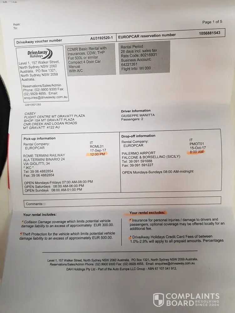 This did not happen. On October 15th we returned the car and they just kept saying they could not do anything about it and we would just have to lodge a complaint requesting a refund, which leads me to where I am now.