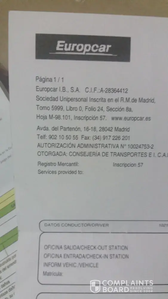 We then complained and said that this charge was incorrect as there was no extra damage and we did not need to submit an accident report, and as per the contract, any suspected damage should have been communicated to us with the allowance of 14 days to dispute.