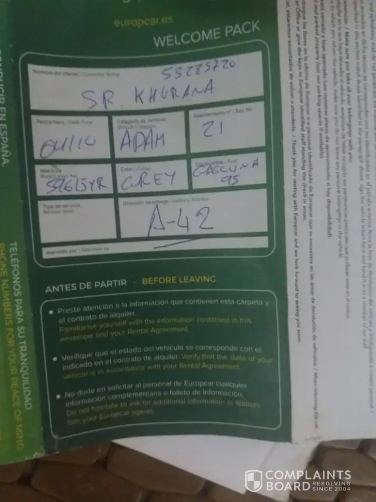2- I went to collect the car from bay 181 and was unhappy to see that the car had not been cleaned properly, perhaps wiped but not cleaned thoroughly. I regularly hire cars from your competitors and this being my first time with Europcar, I can tell that your standards are much lower. The windscreen had marks on it, the windows weren't polished properly, the mirrors had watermarks all over them and even internally there were crumbs and dust by the gear console and armrest.