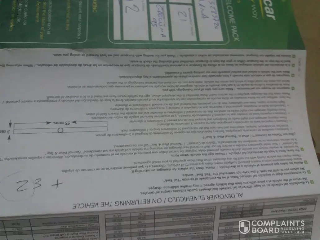 We hired a car from Barcelona Gran Via on the 1st of September and returned it to Barcelona Airport on the 5th of September out of hours. When we picked up the car we check the damages and inquired about the front left bumper with the lady saying yes that was recorded on the contract.
