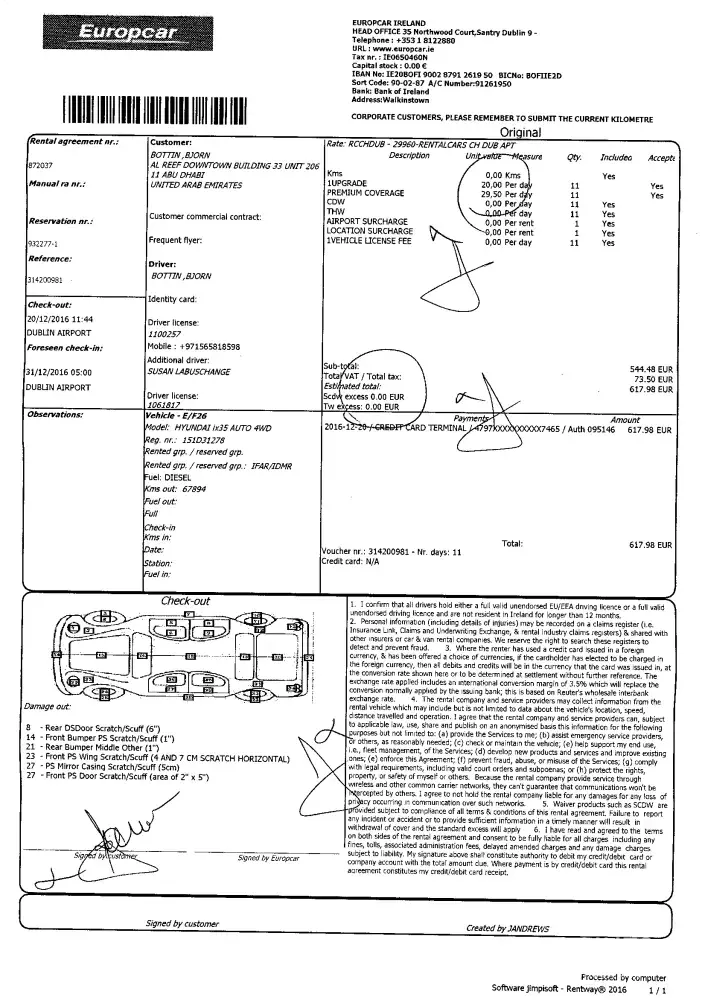 Europe Car rental agreement nr: 872037 Reference: [protected]