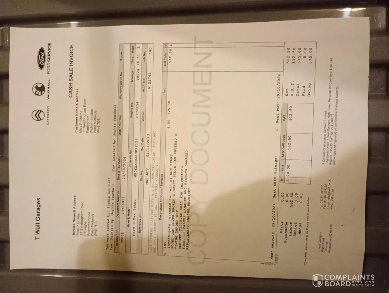 With the car, I received an invoice to say the following has been carried out (invoice No 1164968).