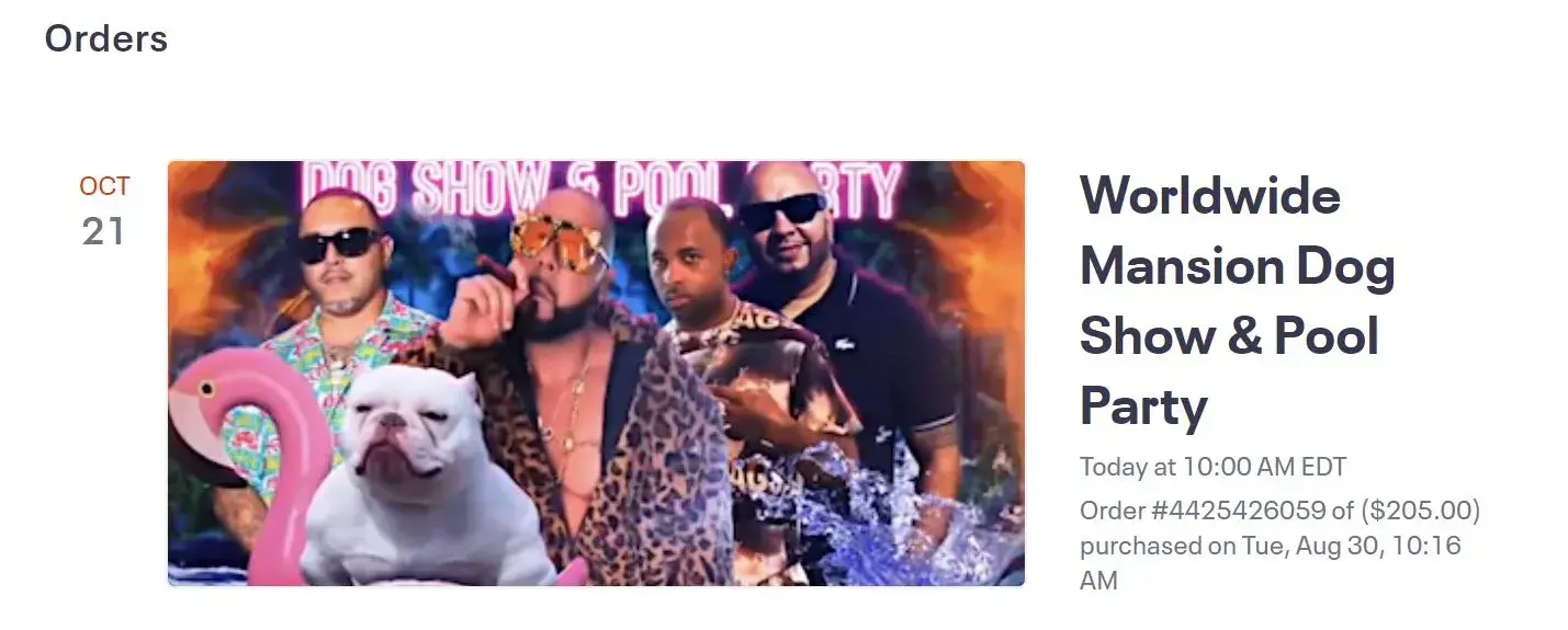 Scheduled an event in Florida entitled Worldwide Mansion Dog Show & Pool Party. My order #[protected] I purchased two tickets for $205.00 on Aug 30, 2022. I went to the event today, Friday, October 21, 2022 from 10:00 AM to 7:00 PM (EDT) as scheduled and there was NO event the promoter identified the location on two cross streets. I have requested a refund to NO AVAIL. This was a SCAM. DO NOT support any events from Javier Rodriguez in Florida.