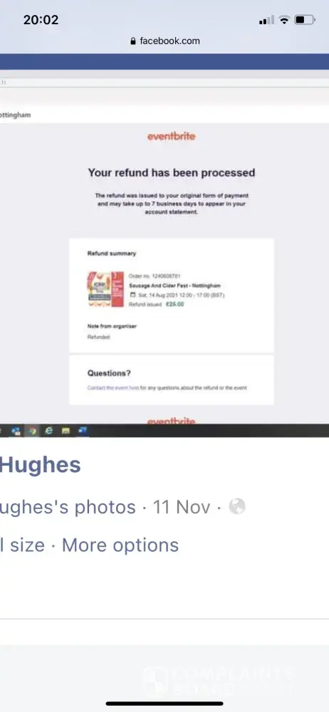 I am writing to inform you of my lack of support and acceptance of refund requests. Several emails to organisers of the event with no success or replies. Only reply I had was that ‘they do not give refunds' despite the original tickets being purchased two years ago! Event still not confirmed or attended!