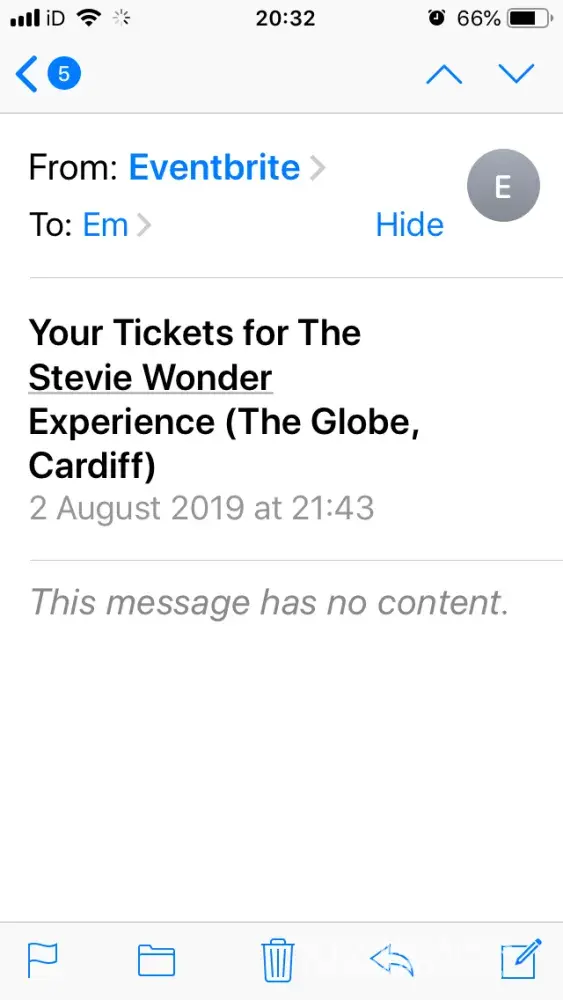 I purchased 2 tickets for a Stevie Wonder tribute act at the Globe on 15th May 2020. The Eventbrite website did not process the transaction properly and I was sent s confirmation email which had no actual information in it. As a result I thought that the transaction had failed so I purchased another two tickets. On checking my credit card I have been debited twice and I have checked my Eventbrite account which states that i have 4 tickets when I only ordered two. I would like a refund from Eventbrite as this is your error.