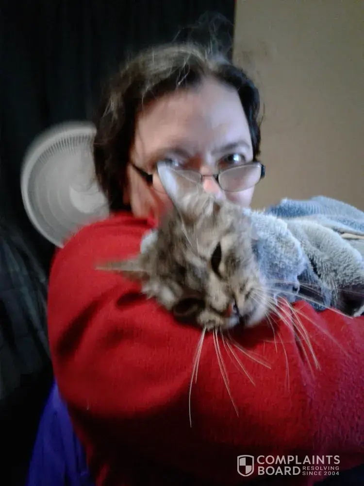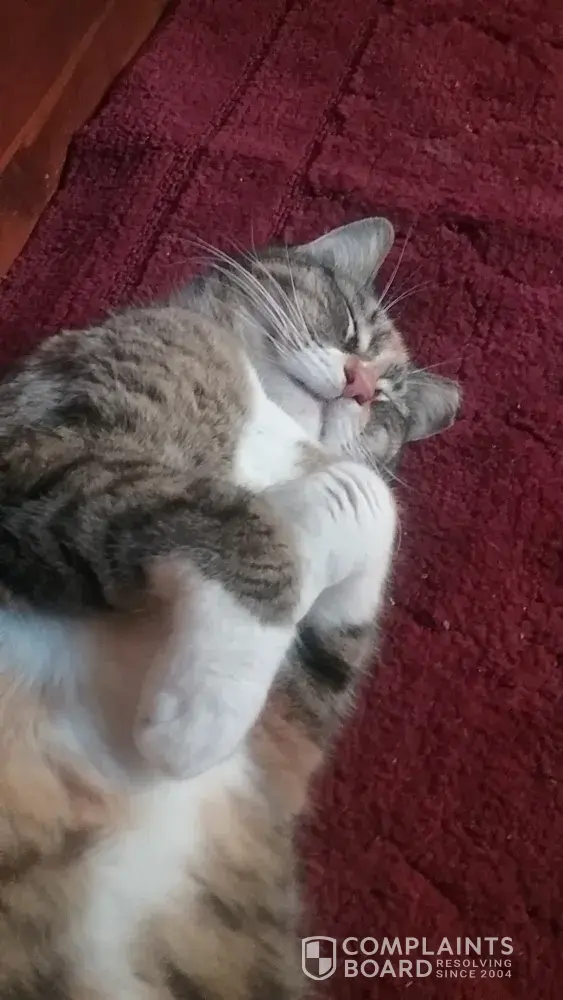 Out of all reported cases, 22 complaints (61%) have been marked as resolved, while 14 complaints (39%) remain unresolved. The most recent resolved complaint, my cats are very sick, provides additional insight into how customer issues have been handled.