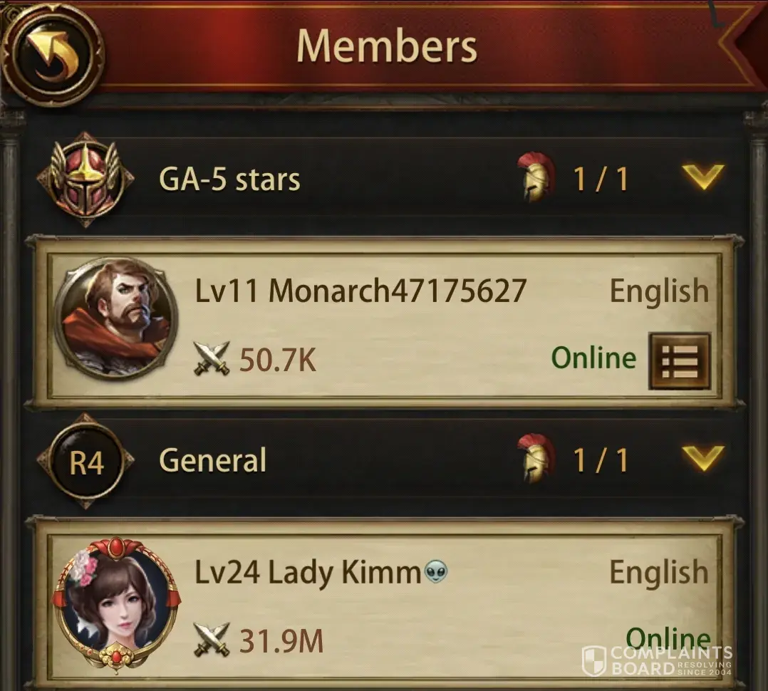 customer support isn't helping or doing anything about 2 situations-1st the timer cool down after leaving an alliance needs to be taken out. i have a ticket on that for reference #1934765 just read that. 2nd situation is a rouge player that customer support isn't doing anything about & has a ticket on it also #1940589. the first problem was on November 05, 2023, with agent Cecilia Y ID #1934765. 2nd problem was on November 09, 2023 agent Mila id #1940589. neither responded in a timely matter nor helped w/ resolving the situation.