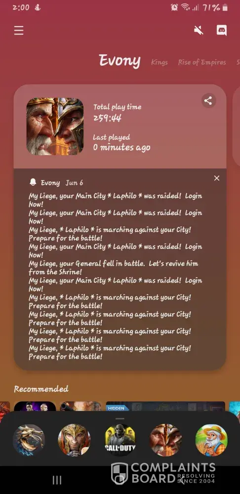 Evony earns a 1.3-star rating from 10 reviews and 231 complaints, showing that the majority of gamers are dissatisfied with gaming experience.