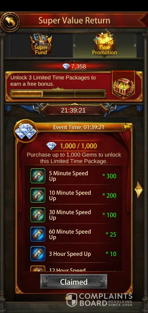 Desired outcome: Give me my items limited time purchase offer against 1000 gems