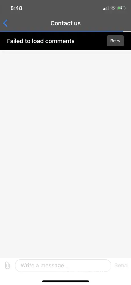 When ever I report somethings wrong. I start a ticket with customer service. They get back to me, but then when I go into that ticket. It says "failed to load comments" with a button to retry. That's what it says every time I report something. I've pressed retry many times over days at a time. It never loads properly. Once before that started happening it used to work and they said to send pics. On my side it won't let me send pics. As you can see in the pics I've sent you here. The attached button isn't on.