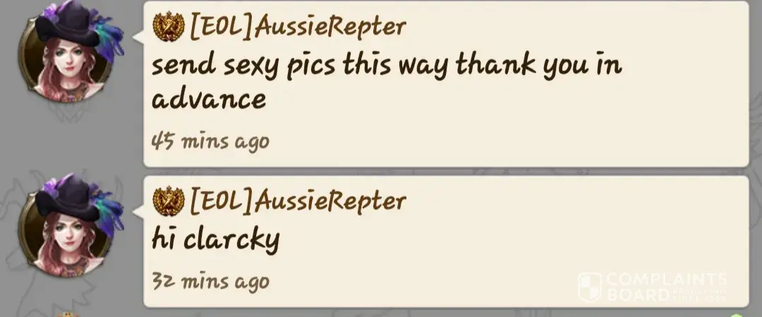 This is just a tip of the iceberg of the crazy sex chats going in a game sever. I am just beginning to feel am in a very bad game where scams, sex and much more than game is going on.