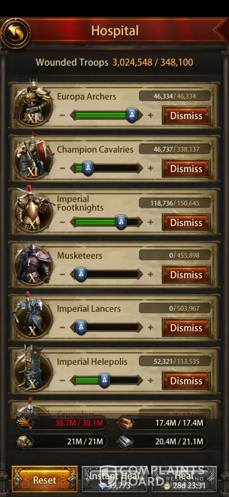Troops recovery should be automatically restored after Batlefield. Not in my case. Player name wyalkyNew. Privided all screenshots, asked the issue to be fixed. 3 answers i have. That the trooos has been restored. But no. They are yet in hospital. I asked repetitive to help and fix the error. But in 2 days looks like i am ignored. I am desperate. It will be easy to see my account and to check all my actions from last days. I am basically stuck. Is not normal for me to stay waiting and not to enjoy all benefits of the game offer in events. One answers was that there it is a bug. And that it. Nothing more. I send it tickets, mails. All i got is an automated answer saying that to appologies and will be highly appreciated. In 24 hours. Is almost 48 and not fixed the issue. Please do what is necessary to enjoy gaming. I eorked hard and list everything lukr in seconds. Is not normal for elme to heal triios spending resources and speeds. That suppose to be done automatically after event ended. It is very frustrating to see that you are helpless. I did healed some trooos for limited participation in events. On top my development was stoped by this matter. I am afraid to ooen any chests or to do more stuff because of this error. Help me please. Your department can fix this so easy. Perhaps they tried. But also have to reconsider their work. Maybe it's some more there as result the trooos still in hospital. Thank you. Valentin Simionescu