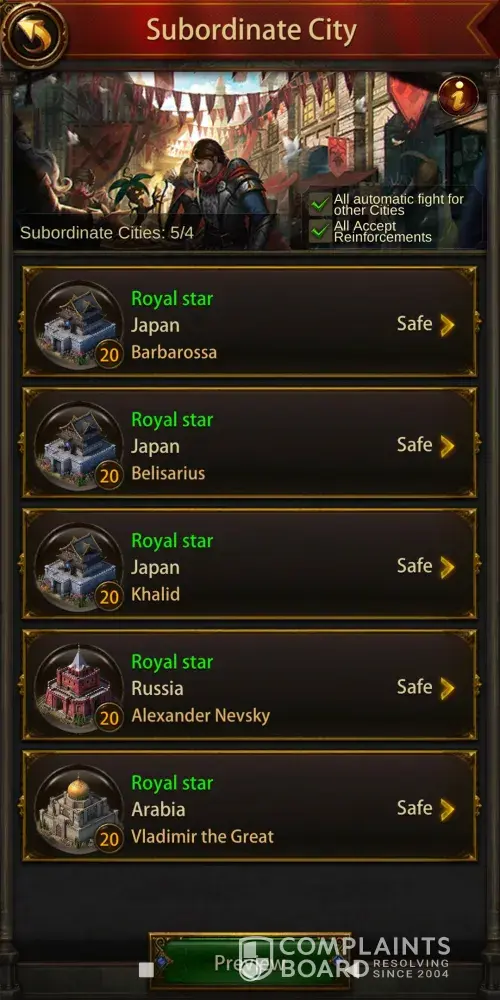 Desired outcome: Return of lost Legendary Europen Subordinate City