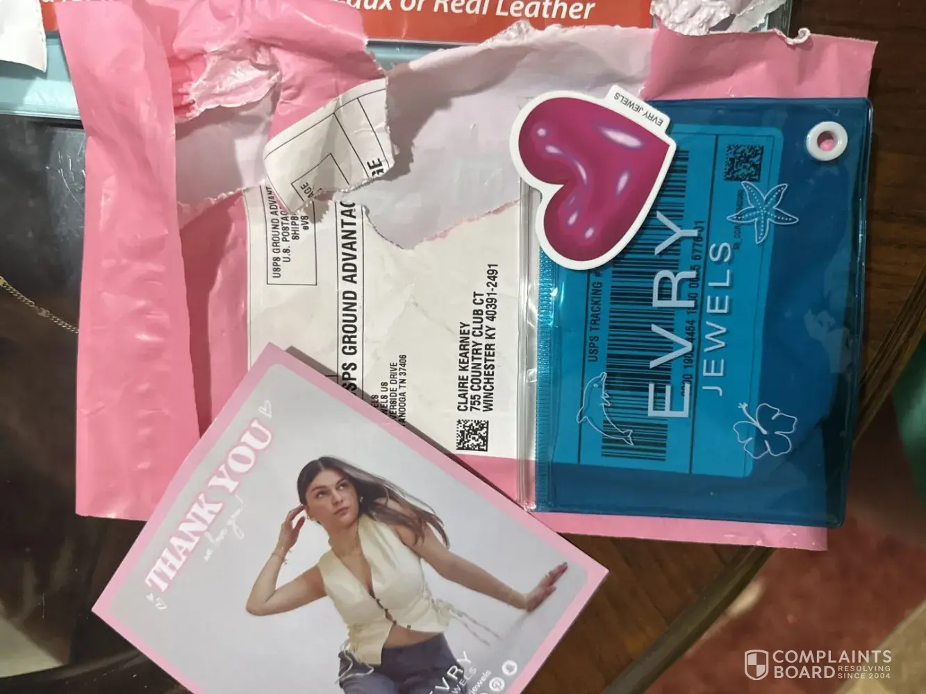 Evry Jewels I ordered 5 pieces of jewelry, and I was never sent a confirmation email. It also took out money from my accounts so I now think I’m being scammed