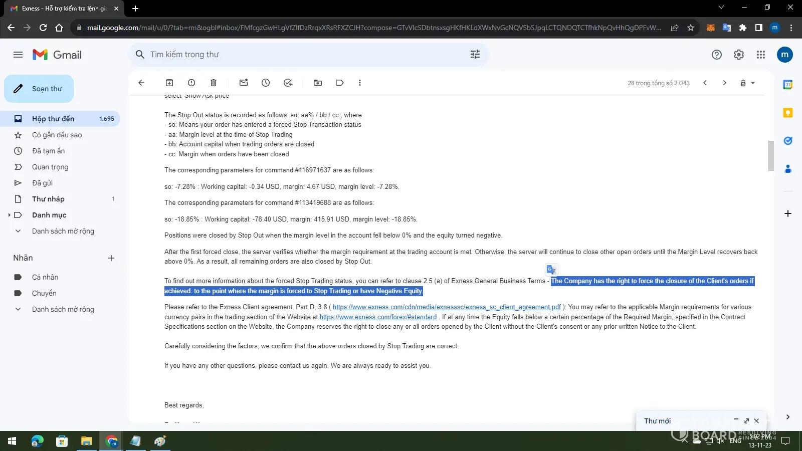 Exness is a sophisticated scam broker and I would like to present it as follows: My account: [protected] My complaint is as follows: First, on August 12, 2023 Exness proactively emailed me about the Stop Stop Protection feature. On October 6, 203, I asked Exness about the order code #[protected] to buy 0.05 lots of XAUUSD that was closed and asked if the "Stop...