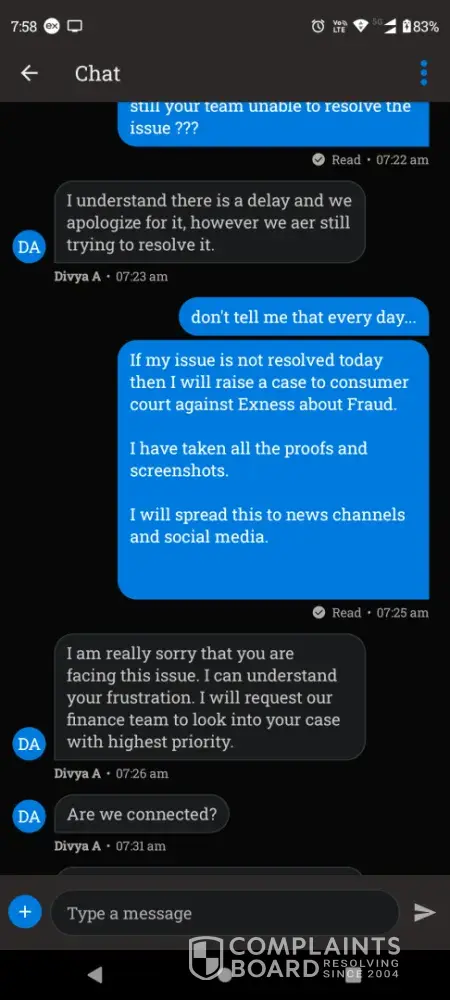 Dubai police cyber team was informed about this technical fault they are asking for the report from Exness. They will be alerting all the citizens of UAE to stop using this platform if not being able to refund my hard earned money.