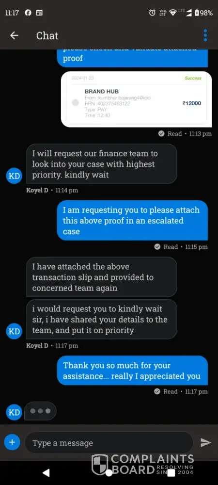 16th October - no refund yet, supplied bank statements to proof no refund, again I was told 2-3 days for refund