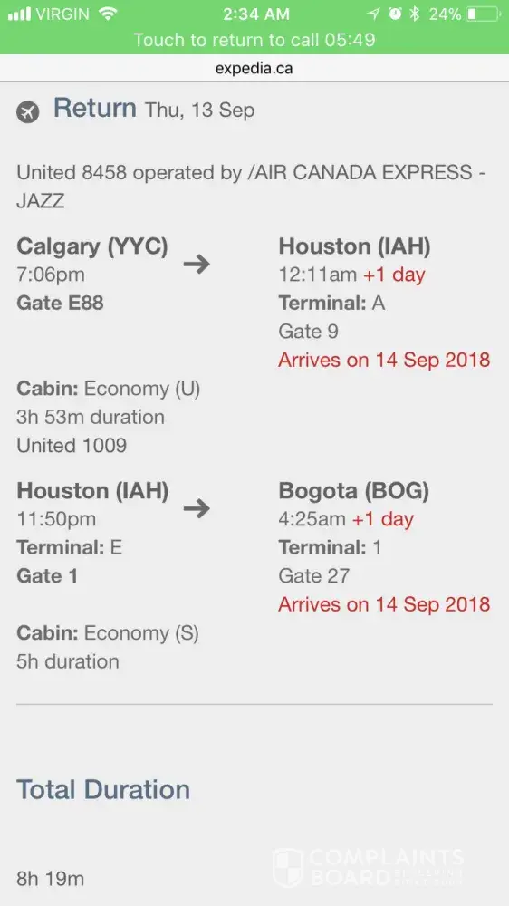 I made a reservation for my mom 76 year-old Spanish woman, for a round trip from Bogotá, Colombia to Calgary, Canada. For the return, there was a change in the air Canada flight that would depart from Calgary to Houston departing 5:25 pm and arriving to Houston at 10:16 pm and there was a flight connection with United airlines departing 11:54 pm and arriving to Bogotá at 4:54 am next day. It seems Air Canada changed the fight. You sent an email that I had urgently to contact you. I did. You gave options that I didn't like because my mom is and old person and she can't stay overnight in a foreign airport on her own. She needs wheel chair assistance and only speaks Spanish. So I said no to those options. The agent said she will call me back but she never did. Now, the change Air Canada made was a flight departing 7 pm sept 13 and arriving to Houston at 12:11 pm. But there was no change in united flight which departure was 11:50 pm! Of course my mom missed the flight. I paid Expedia for an intinerary and it was changed and set for fail! Expedia didn't do anything. My mom got stuck in Houston, alone and now I tried to call Expedia. 3 hours back and forth trasfered call to united and then air Canada and then back to Expedia! E hours. Nobody wanted to take responsibility. Expedia wanted to charge extra for putting my mom in other flight to Bogotá, because conveniently, she appeared as if she had not showed up for the flight to Bogotá! How could she have showed up in 2 diferent places at the same time? She is old, scared and getting sick. This is abuse to elderly people. How do you think she has to pay for hotel and another flight because she was set to fail and it was Expedia's fault? This is abuse and people needs to know about this.