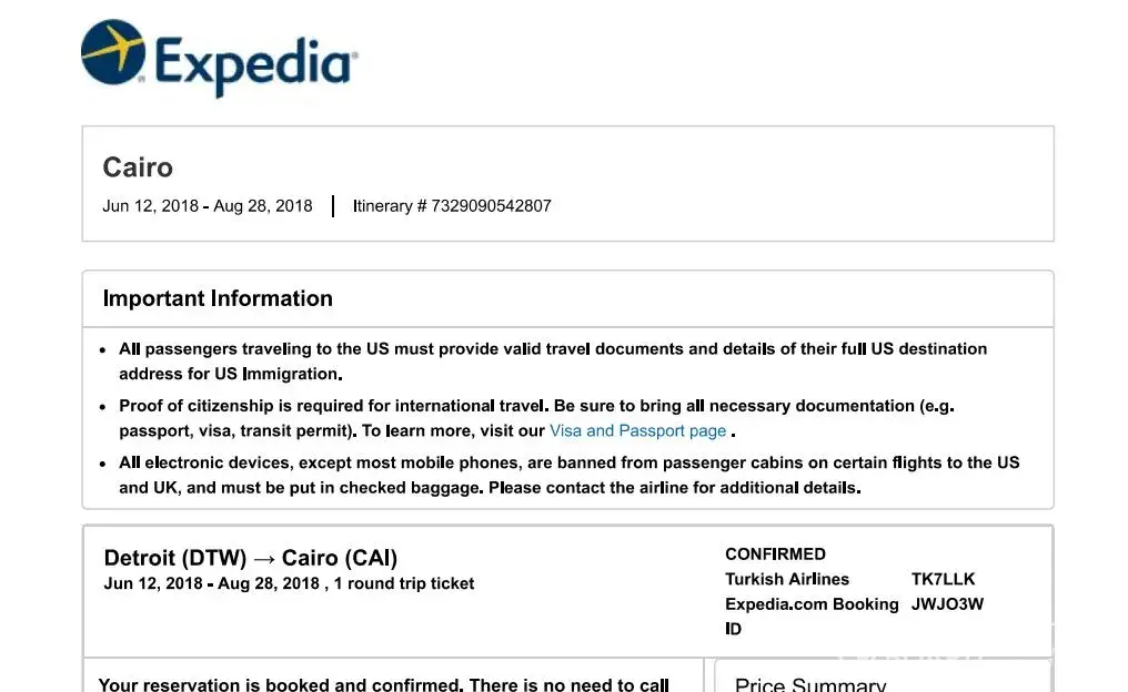 I want to file a complaint against Expedia. I booked a round trip from Detroit, MI (DTW) to Cairo, Egypt (CAI) and I was supposed to fly back to Detroit today Aug 27th, but I faced a big issue when I arrived at the airport. When I reached the counter to check in, the agent informed me that I am not allowed to have a transit in Canada as an Egyptian citizen and that I am not eligible for an e-Visa. When I explained to him that neither did the airline nor Expedia inform me and I have NOT gotten any error message or been notified at all. He told me that I would have to talk to expedia customer service. I had to make an international call that lasted for 2 hours, but the agent was not being helpful! I asked her to change the route of my flight so that I do not have a transit in Canada or if she could reserve the next available flight. She put me on hold for so long and as the time was passing I was trying to get the issue resolved with the airline office at the airport and trying to explain to them that it was not my fault not being notified about this and that I should get a compensation. The agent hung up! and I had to call back to speak with another agent who told me, after checking, that I would only get a refund for the amount of taxes ($234), which is totally UNFAIR. I ended up in a situation where I had to leave the airport, book a new expensive ticket from another agency for $1, 619 on September 3rd (7days later), which has messed up my whole work and study schedule!, missed my flight, and not getting any compensation or a refund! The first day of classes is September 4th and I should arrive the night before, which is definitely inconvenient for an international student! I am filing this complaint and I am requesting a full refund or at least 50% of the ticket value for the inconvenience, poor customer service, and not flying on time!
