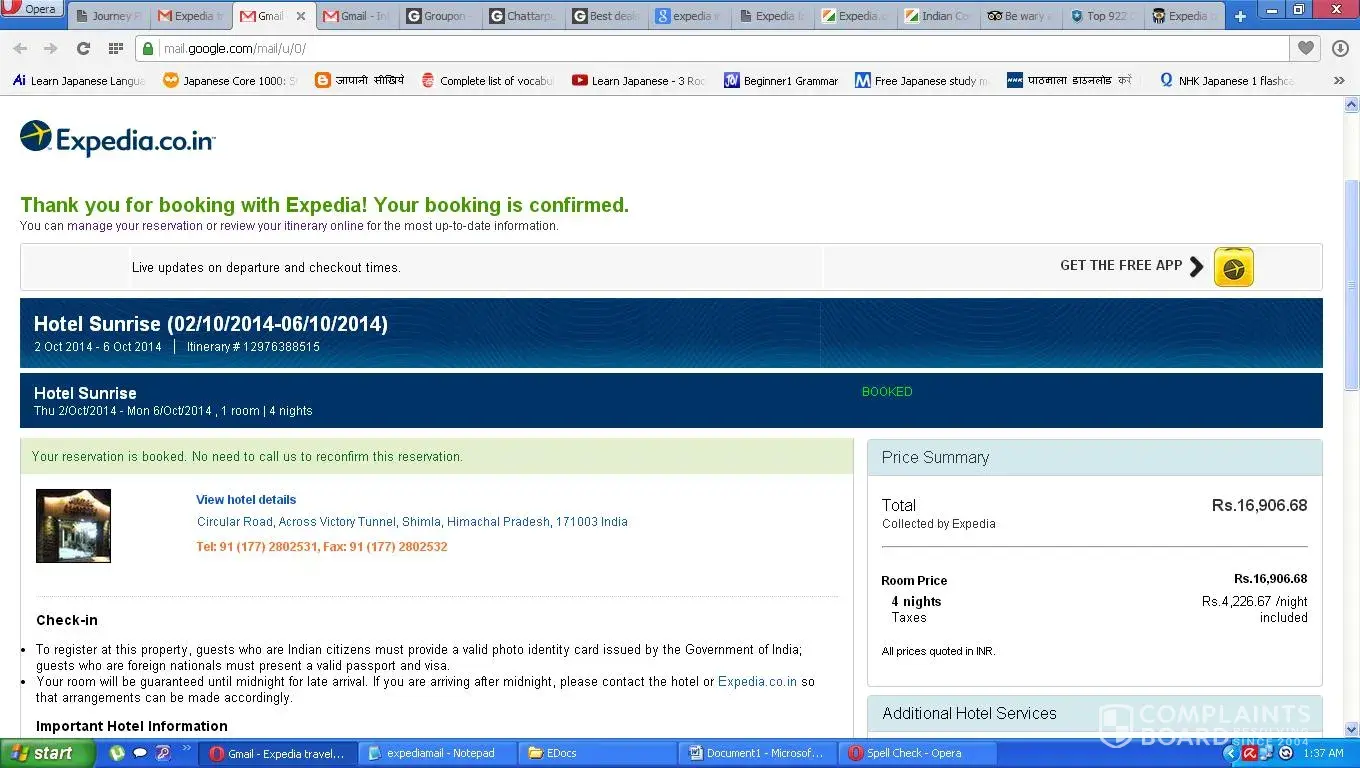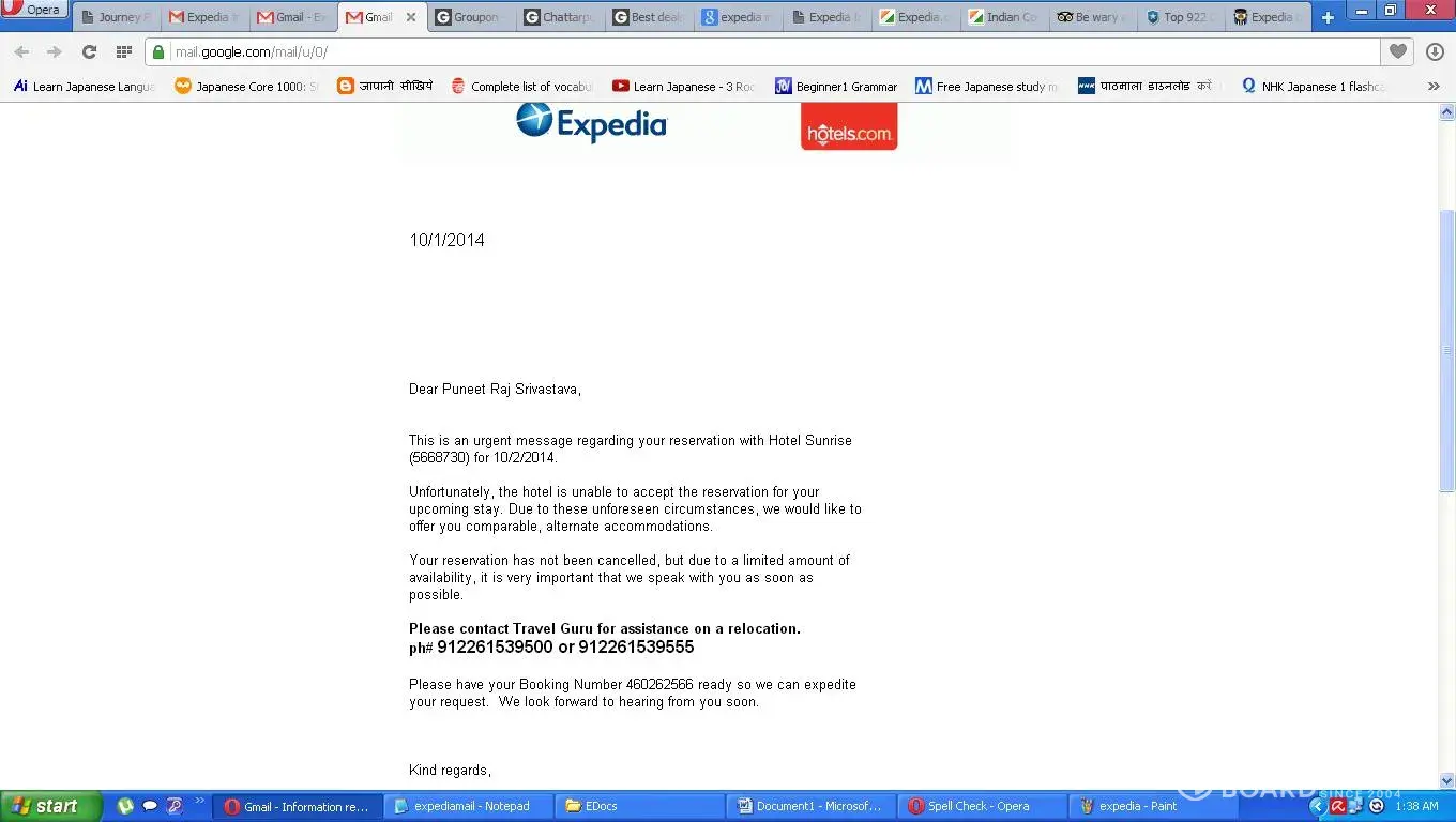 At 24 sept.2014 I called to expedia for hotel booking in shimla for the period 2-6 oct 14 and customer care executive provided me some option among which I selected one (Hotel sunrise) and he made a confirm booking then amount has deducted from my bank account and I received confirmation on e mail for booking on 1st oct 2014 around 10 am in morning I received a sms on my mobile from hotel sunrise that booking is not possible for any one who booked hotel after 16th of september please contact to expedia for more detail, I called to expedia customer care they kept me wait more than 1 hour and finally said yes there are "some" problem and we will call you and provide you some alternate option in next 1 hour, but I have not recived any call even after next 2 hours, then I called again and this time again I explained all to them and they said we are transferring your call to relocation dept. But on transferring my call I kept waiting exactly 2 hours and no one picked my call, same thing happened to my next call to expedia, again executive kept me wait for 2 hours and finally transfered my call to relocation dept. This time call got picked up and a lady said sorry we do not have list for option so please contact to expedia india office I again called to expedia and after 1 hour wait executive again transfered my call to relocation dept this time same lady picked up and said I need to see and look what I can do, I told her that please take my case seriously as since morning I am trying to call but none of the I got any serious rectification, she said she will call me in some time I received a call from her and she gave me options like can you cancel this trip and go to some other dates or can you take another hotel (which was 80 km far away from the location of shimla) I refused as it was not suitable at all, so finally she said I am dropping an e mail you may contact to the no mentioned in e mail the no was "travel guru" who are associated with expedia, I called on given no but to my surprise I got an answer from travel guru that we do not have any booking information in our system so we cant help please contact again to expedia I again contacted and by the time it was already 10 pm and I could not start my travel and it was not possible to reach shimla at 2 oct I had to lose my travel I again called expedia and asked for refund of booking cost and the loss of travel ticket cancellation but they plainly said only refund of hotel booking is possible and for other reimbursement please write mail on this and we will revert in next 7 business working days I made biggest mistake of my life booking via expedia india I lost my holidays wasted full days calling expedia more than 10 hours in day which is not a toll free but paid call travel ticket cancellation amount and mental stress complete hell like treatment I will file a case against expedia in consumer court and fight for justice I want to share with every one this experience so one may think twice before opting expedia