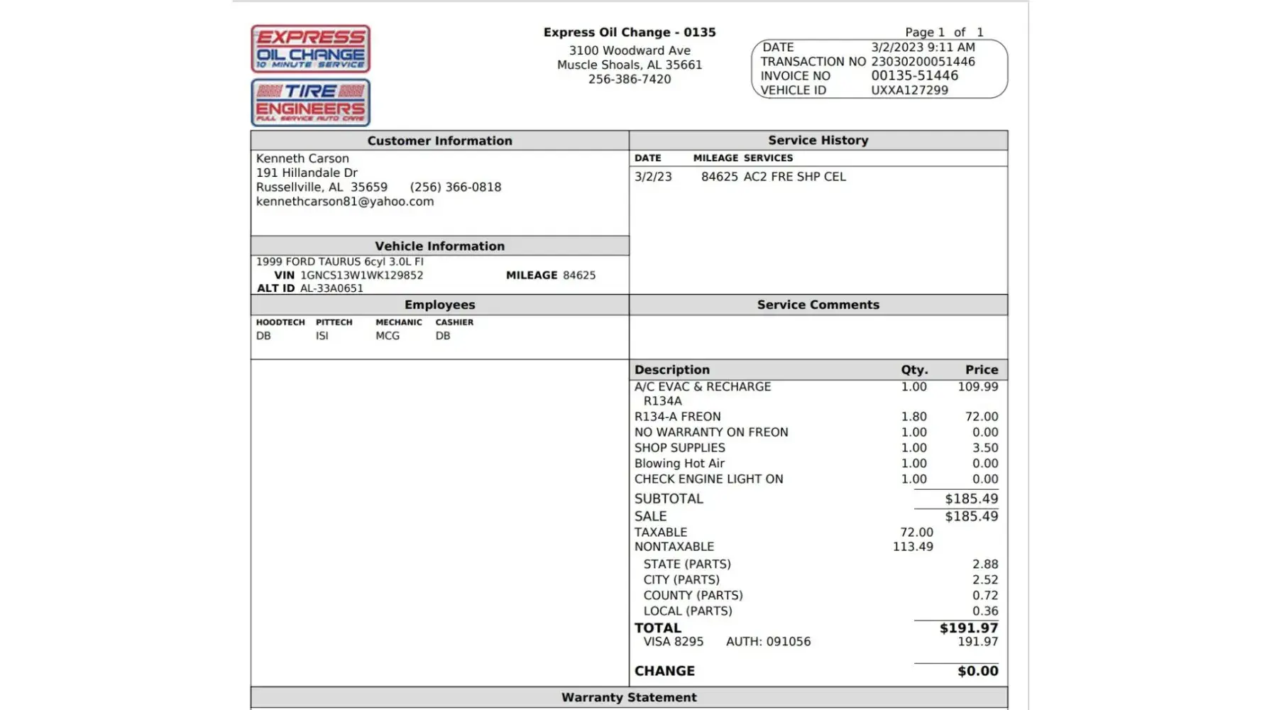Read full complaint and 1 commentIs Express Oil Change & Tire Engineers Legit?