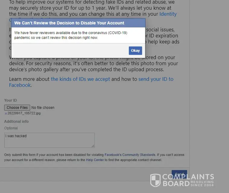 I was hacked and Facebook did nothing to help in the situation. In fact they did the opposite. They deleted 15 years of photos, conversations, and information for my deceased father that I will never be able to view ever again. I requested a review of my account and provided my federal ID and the denied my request due to "Not having enough reviewers due to covid-19". Really, we are past covid-19. After that fact, I requested that I be able to download my information. They denied my request. They also deleted my Instagram account and deleted my business account as well. They have absolutely zero customer service and pretty much treat you like cattle going to the butcher barn.