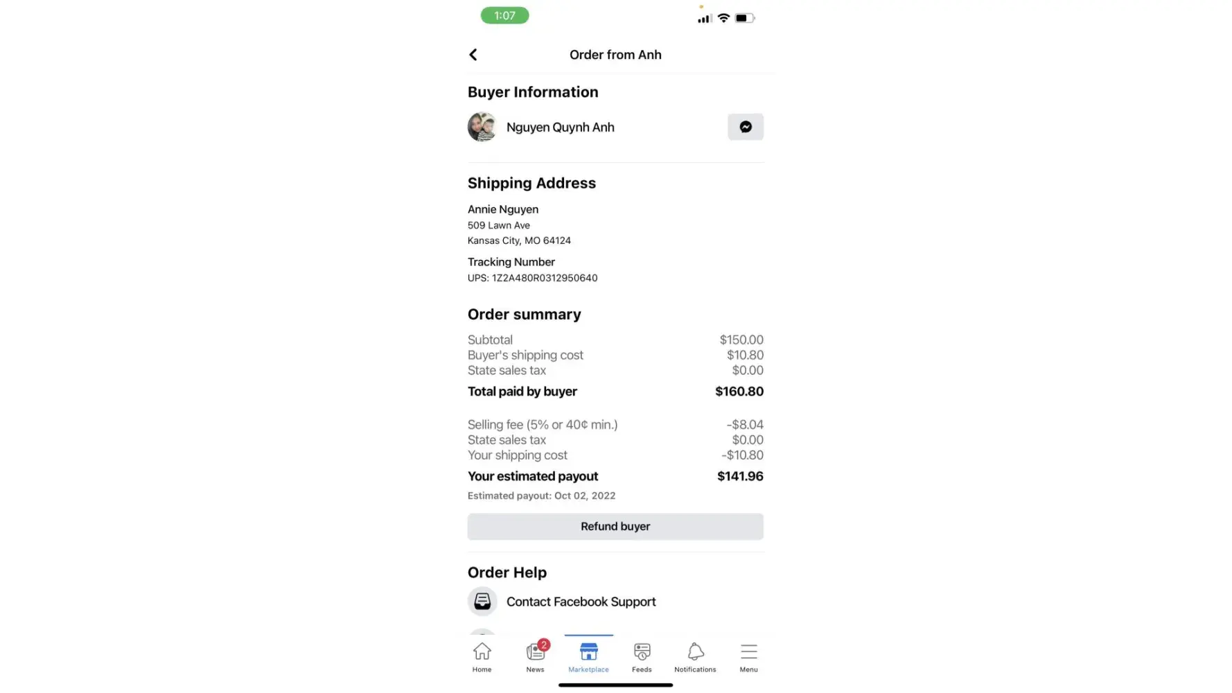 I listed a pair of sneakers on 9/14/22. I sold them and shipped to customer 9/15/22. the tracking numer is 1Z2A480R0312950640. They were delivered to the customer and I am still awaiting my payout. This is unacceptable. At this point i feel like facebook robbed me.