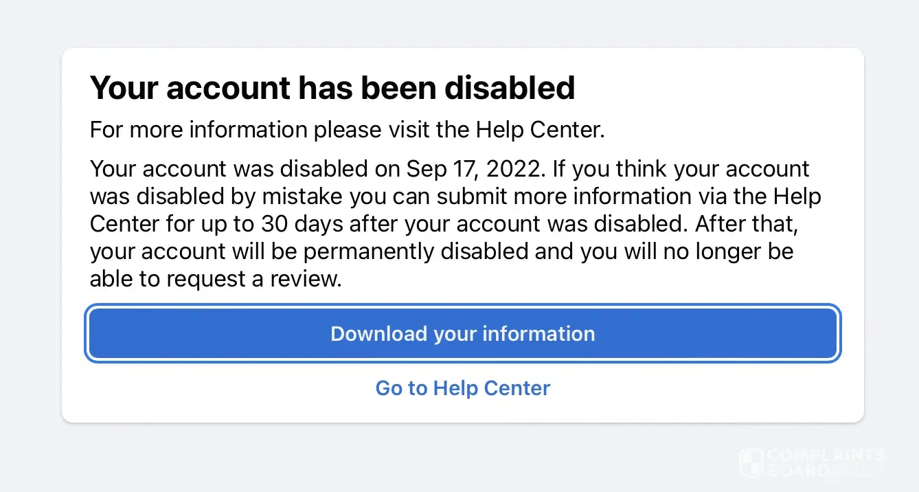1- I received an email that my account was permanently disabled and I am disallowed from using the platform. The email stated this decision was final and not appealable.