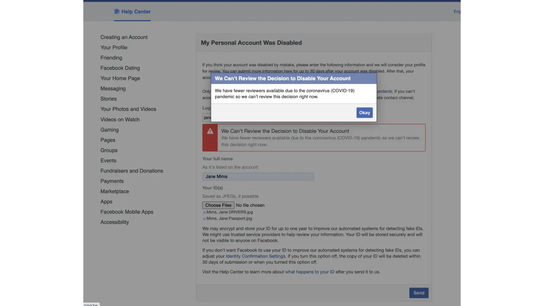 1- Facebook disabled my new account and sent me the message “it appears you are using two accountsâ€, linked my new account to my old one, and sent me in the same loop of appeal rejections I was in for the original account