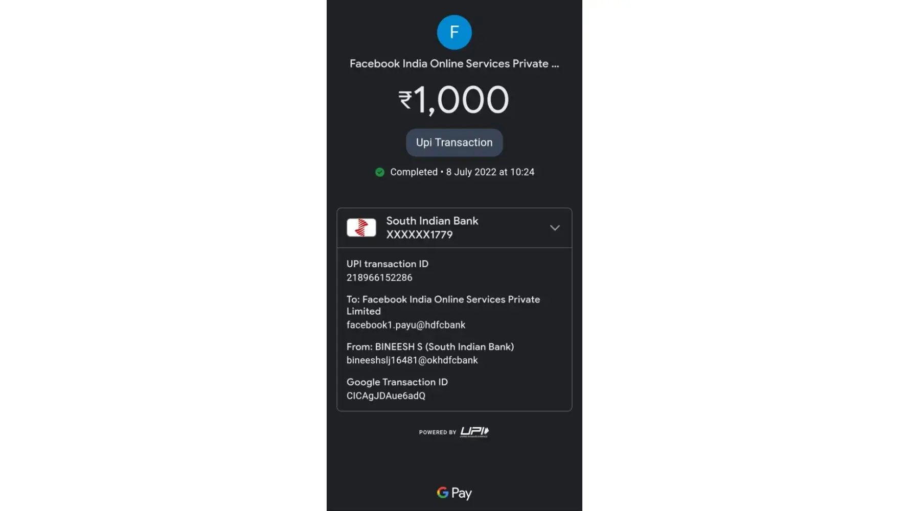 Desired outcome: please refund id g pay [protected]