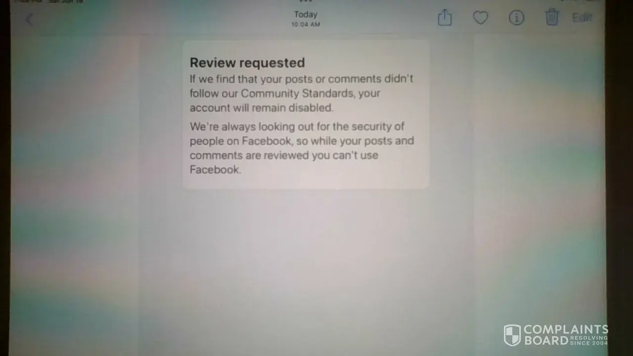 Hi I received a message stating I wasn't allowed to be on facebook and I don't understand why I haven't written anything or commented about anything I use facebook for market place and browsing all the write ups for local groups also I had to put a photo up which I never wanted to I would like to know what I have done to be blocked from FACEBOOK