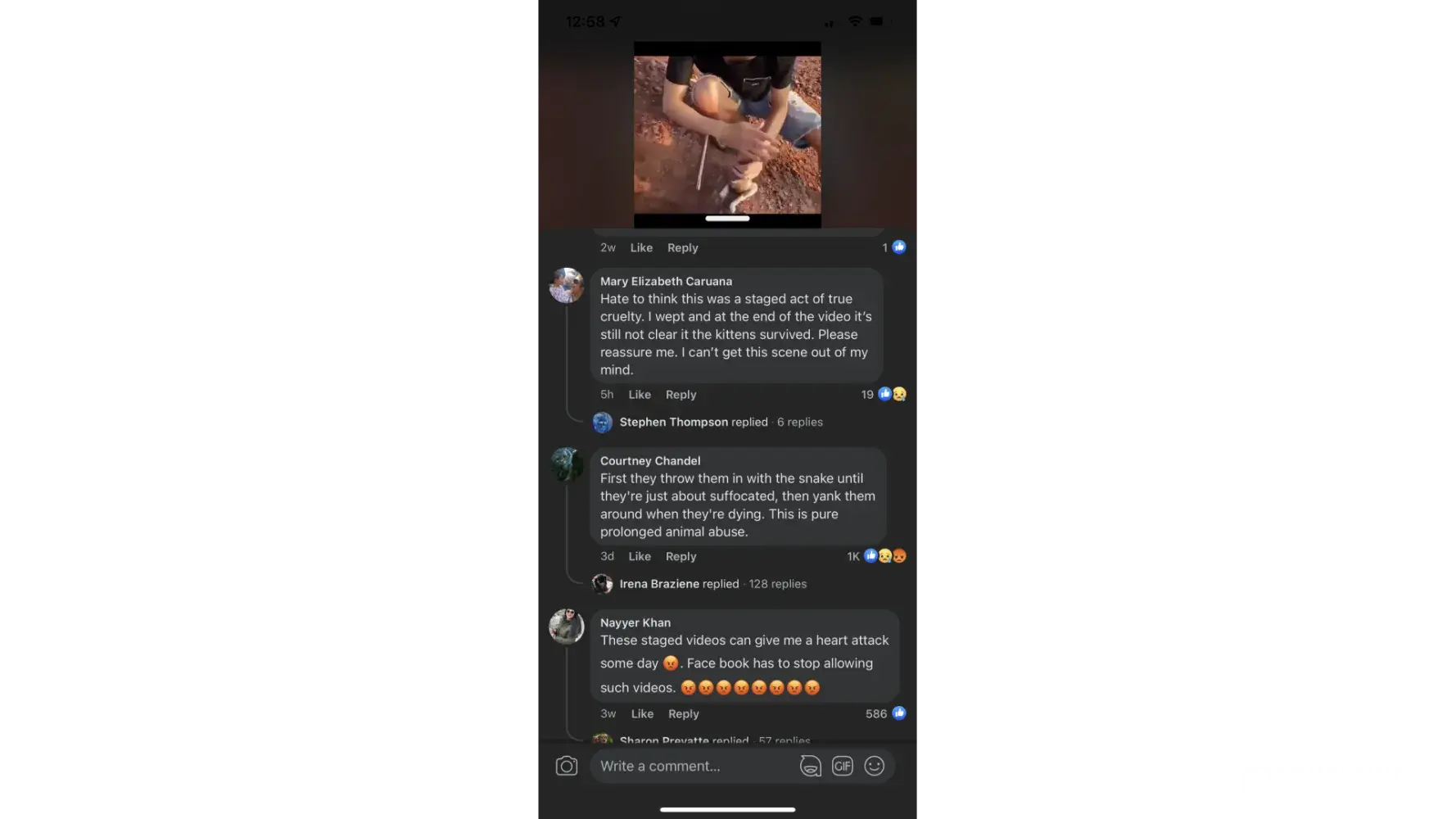 There has been a lot of videos uploaded that involve animal abuse. They are stating that they are rescuing the animal but are actually putting the animal in the situation then filming them "saving it". One video has two kittens that they put in a dirt hole with a large snake. The snake is constricting the kitten and the people mess around with it and eventually release the kitten from the snake. The kitten is almost dead at this point. There is also one where they tied a dog by its collar to a telephone pole. They then climb up and "rescue it". You can tell the dog has been there before and it is impossible for it to climb up that high. Several pages post these videos and everyone in the comments knows it is set up. It needs to end now. One page is called hope for paws-animal rescue and they posted one kitten they drowned on June 27th of 2022. The comments are all about how it is set up. It looks like they live in a middle eastern country based off their ethnicity and geography in the videos.