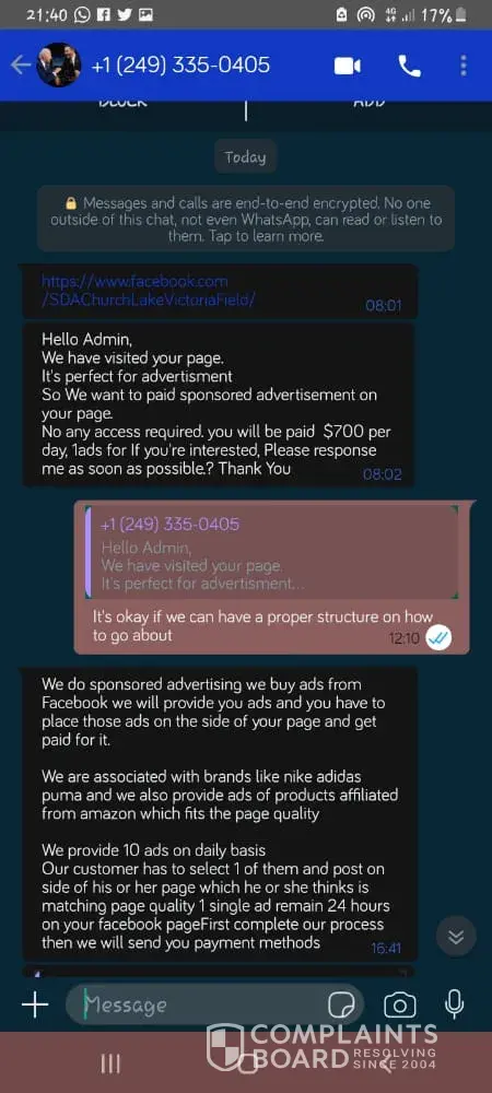 A man approached me today, on issue Ads advertisement and on the process to actualize the process he claimed the page ownership... he bears the phone number +[protected]