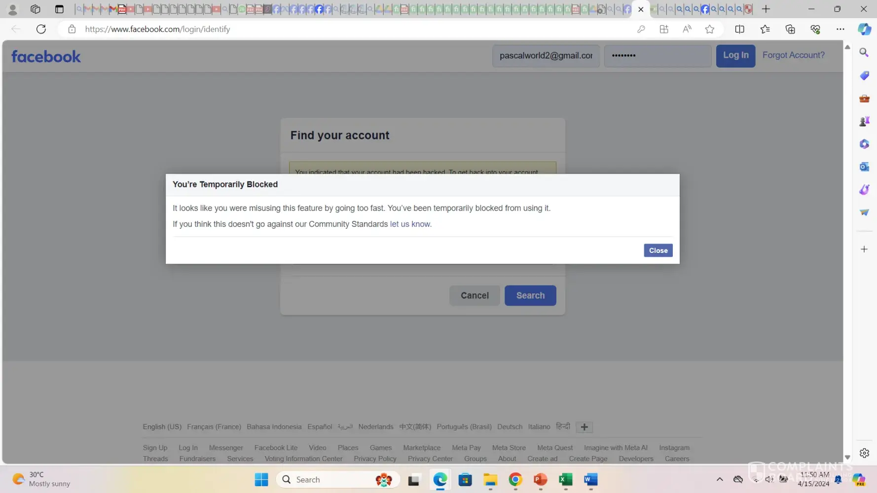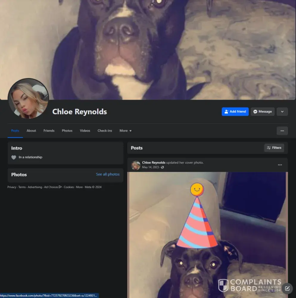 the FB website under “Report a Problemâ€, “otherâ€. On June 9, 2024 about 10:45-11:00 am.
