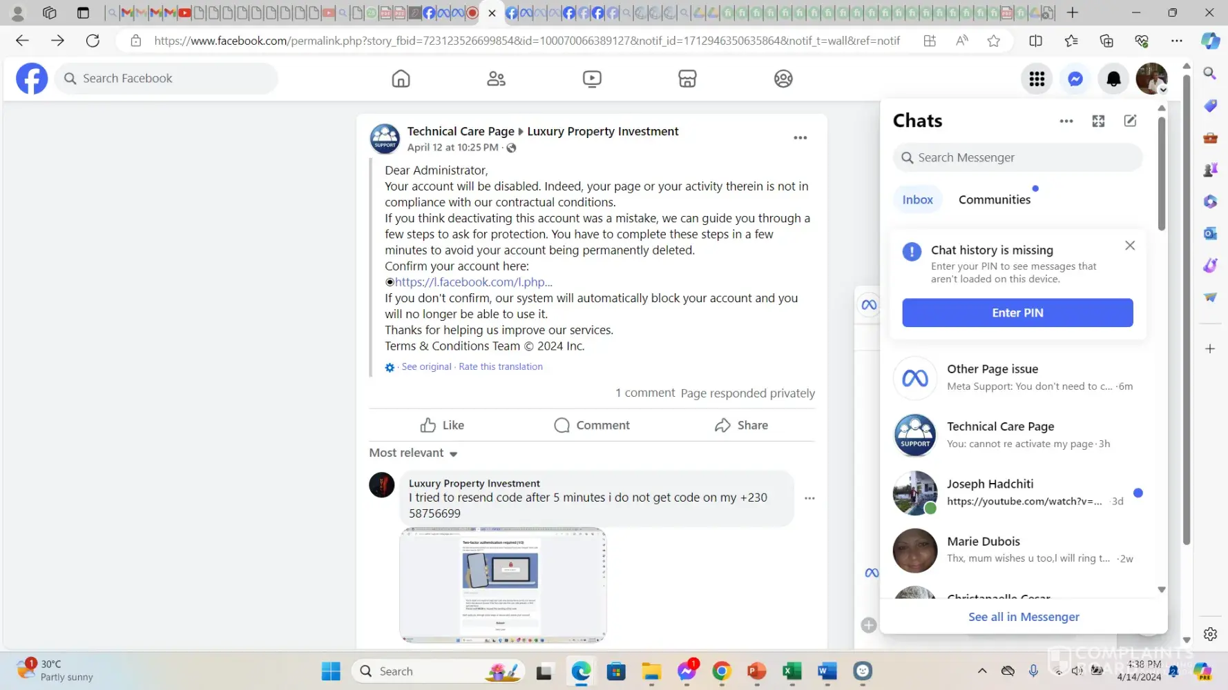 My account was hacked on 14/04/2024.