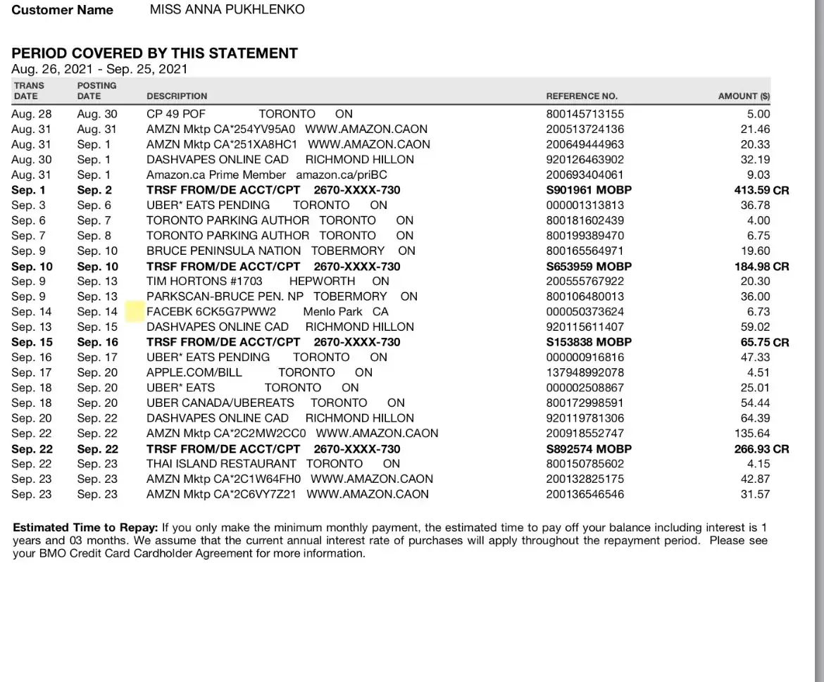 Sept 14, 2021 amount $6.73