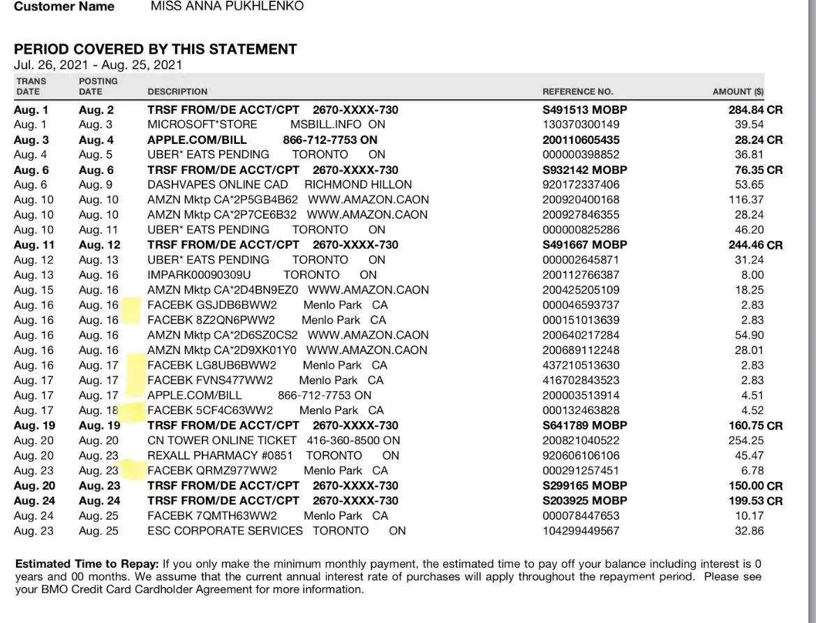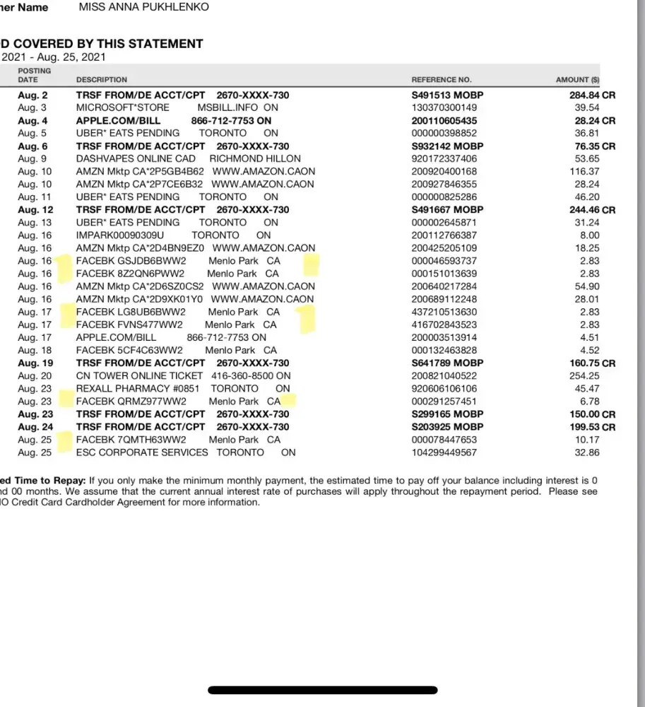 Unauthorized facebk changes on my credit card