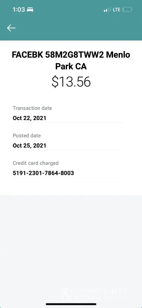 I just noticed unauthorized facebk charges on my credit card: