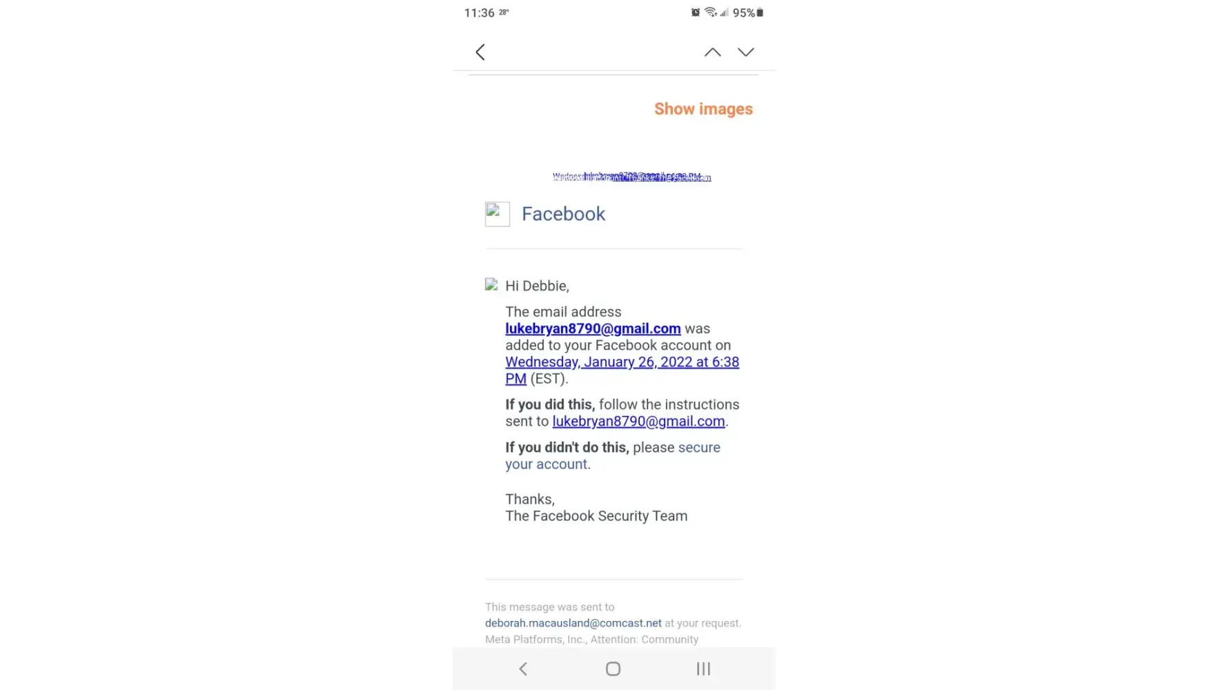 My FB account was hacked on January 26, 2022. I received an email from FB saying that my primary email was changed to [protected]@gmail.com. I then received an email from FB saying that my phone number was changed to [protected]. I did not make either of these changes. I used the secure your account link and when I completed it, it stated something is wrong and cannot process. I have been a FB member since 2008-2009. I have contacts on my account that I would not be able to find again due to familiar names and places they live. This information is valuable to me. I also have years of pictures on the site from trips, etc that I would like access back to. I have tried to email FB at several different emails, no response. I tried to call FB at 650-308-7300 and 650-543-4800 and the result was a machine that states they are not currently taking phone calls to assist customers. They have no directions online to resolve hacked accounts. I need someone to contact me and fix this situation please. I did not disable my account, change my email or change my phone number. Currently it is as if I have never had an account. I can't even get a friend to help me reset because they can't find me. My account has been active since 2008-2009 and should be easy to verify. When and or if FB contacts me I will be happy to provide information that verifies this is me. Please HELP.