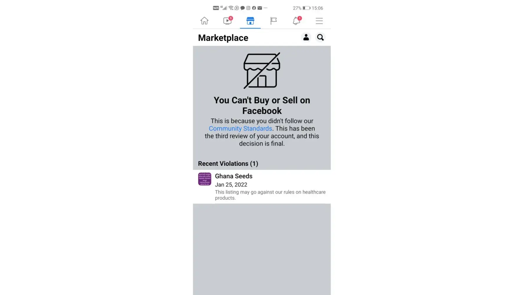 I was selling Ghana seeds for R150 which is the are other people that are selling that but their posts are not removed or reported