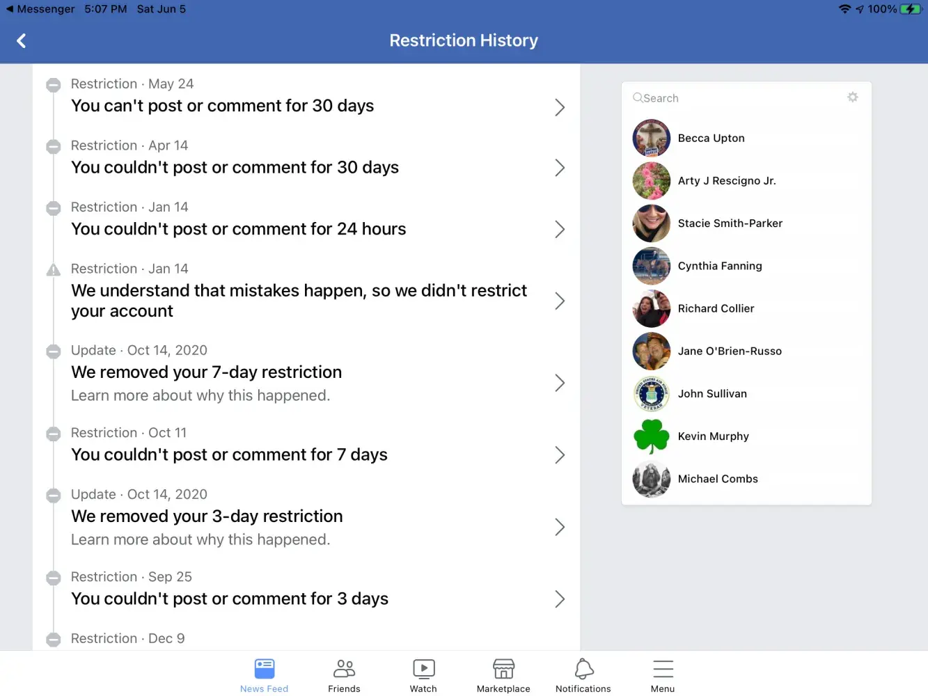 Facebook keeps tracking past posts. If they disagree with what you say. They mark it "bullying " but cannot tell me who i bullied. You cannot bully the population. And they refuse to tell me who i bullied or how. Just that i did. At this point im pretty sure im getting targeted by facebook for being a straight white male. If i were gay or black. I could post to my father on fathers day. But im a straight white guy and they collected up past posts they didnt agree with. And threw this book at me fathers day weekend. Im tired of this racist company blatently discriminating against whites and calling it bullying. As a way to ban us from speaking. If i had been targeting another person. Thats bullying. You cannot bully a group of people.